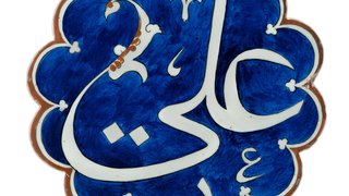 This scalloped tile roundel from the Ottoman period (10th-11th century AH/16th century CE) is part of a set of eight Iznik tiles with inscriptions. They were most probably used as an interior decoration set in the pendentives supporting a dome on four arches of a mosque.